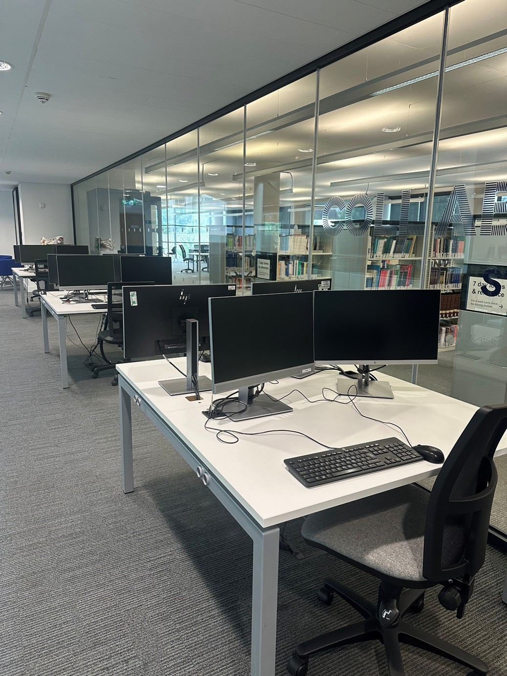 Postgraduates are offered priority for the seating and computers in this location and we promote students connecting with their peers whilst studying in this space. The remainder of the third floor collaborative zone is for all students to use.