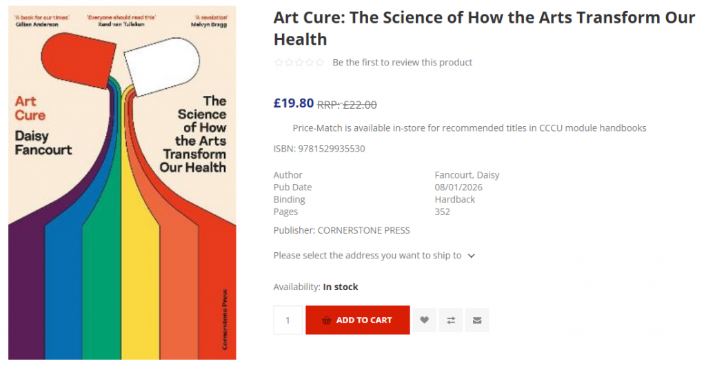 Screenshot of the book ‘Art Cure’ from the CCCU Bookshop website