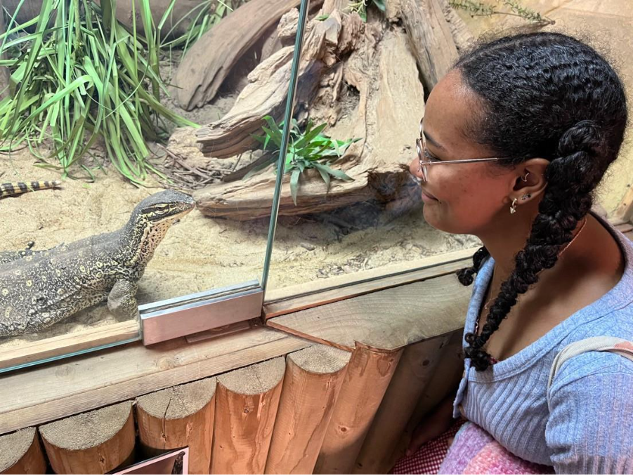 Pictured above – Flic trying to communicate with a monitor lizard, seems to be going well.